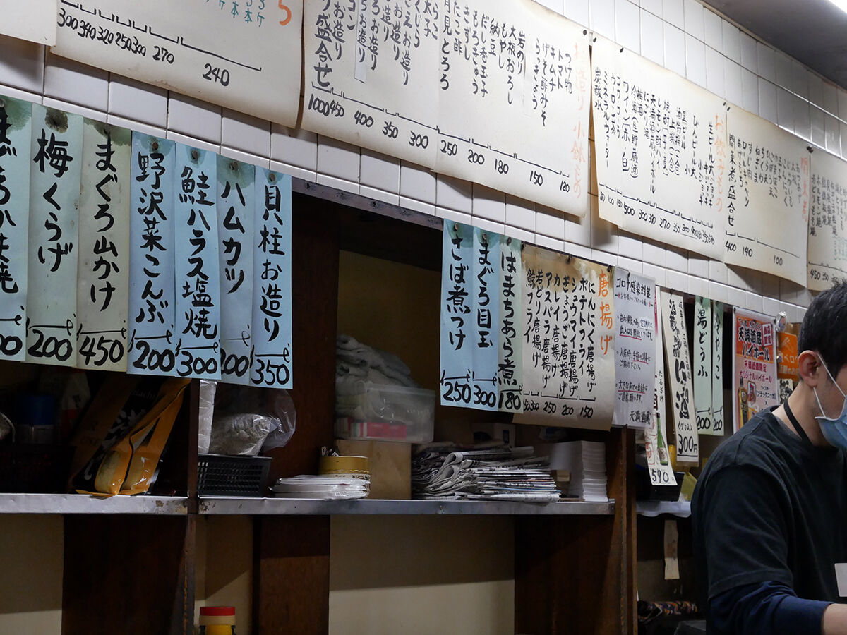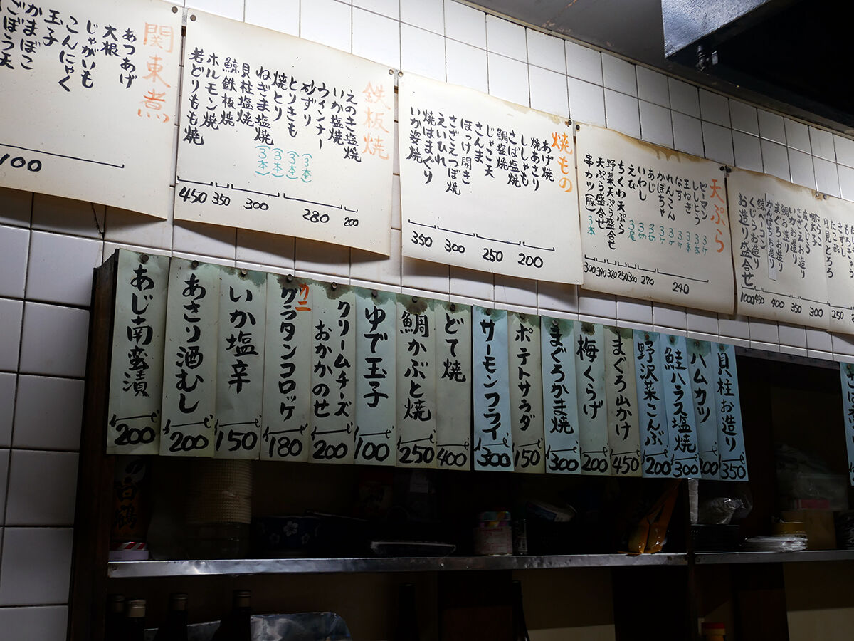メニューは頭上やらカウンター内の短冊や用紙やらあっちこっちに掲げられます。