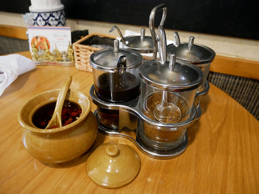 各テーブルには調味料セットもスタンバイ。