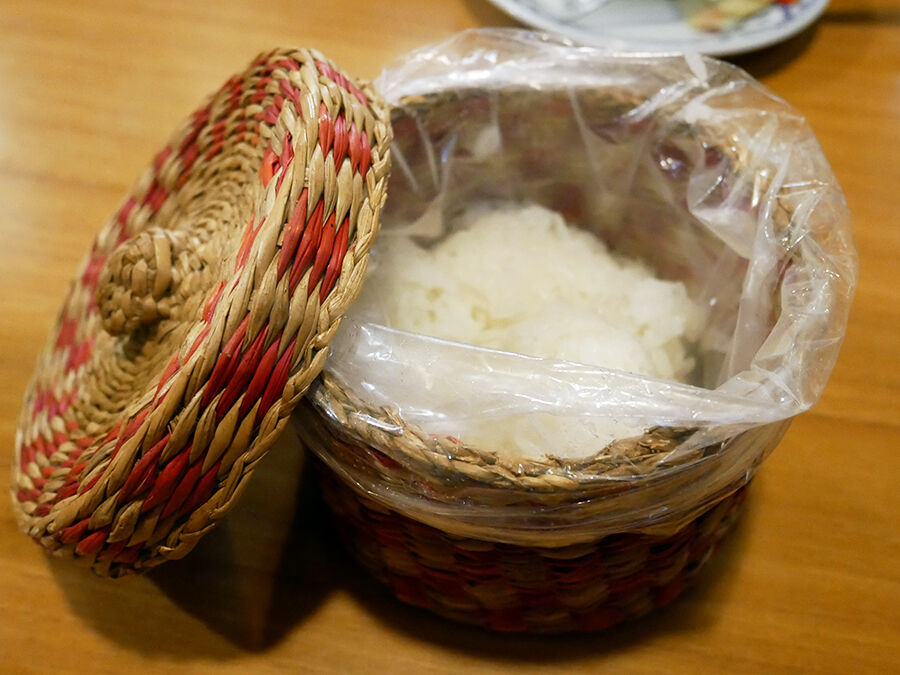 普段の飲みなら、しょっぱなからご飯・炭水化物とかほぼあり得へんけど、タイ料理においてのこのもち米は必須。