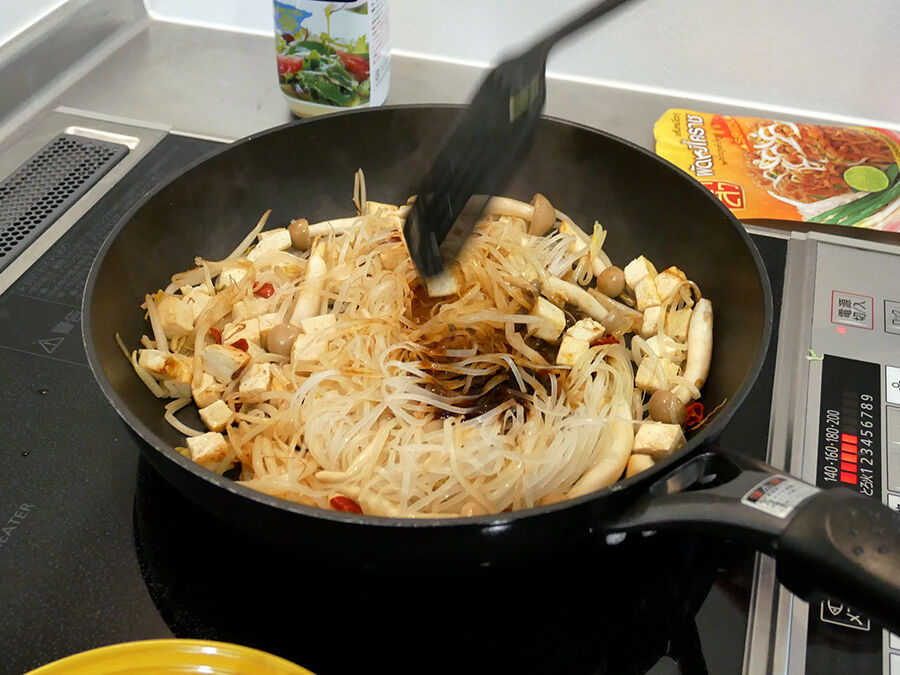 では。 調理はパートナー任せ!パッタイ作りの動画を見ながら〜