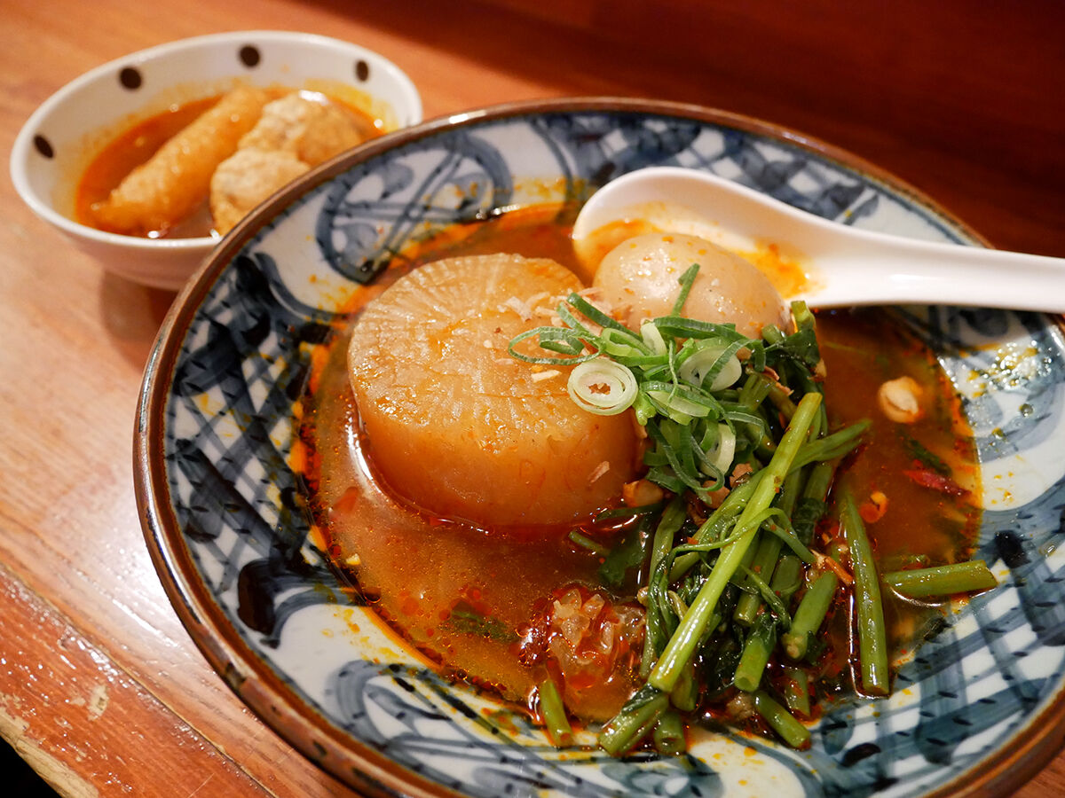 薬膳おでん(玉子170円、大根170円、空芯菜220円)