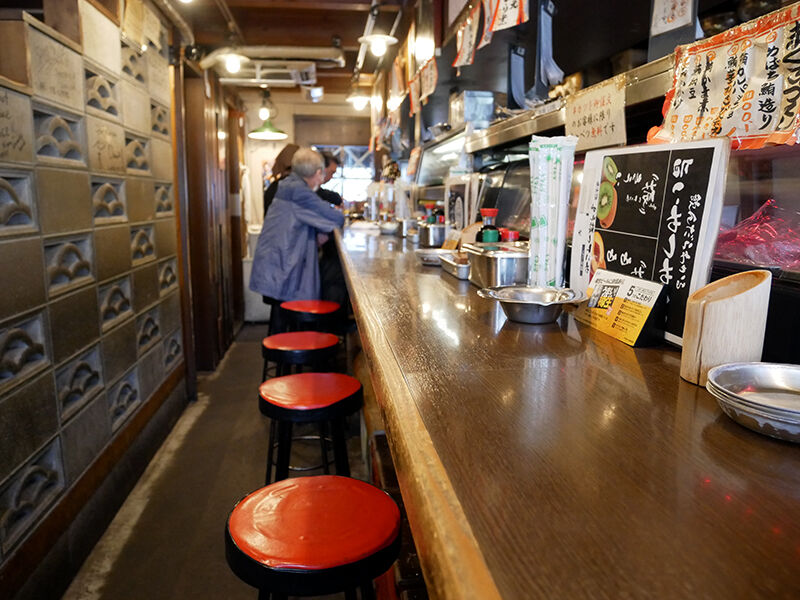 入った店内は調理場と対面の長〜いカウンター席。