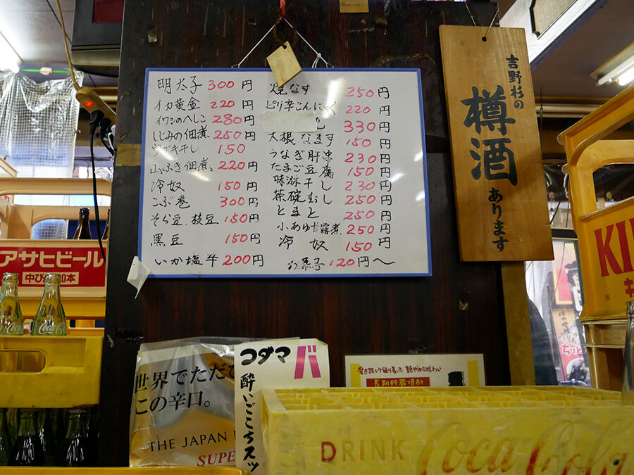 この日のアテメニュー。なんだかキレイになっている、しっかりと書き換えられたのだな。(あるもん〜ないもん〜あるので、ショーケースチェックでね)