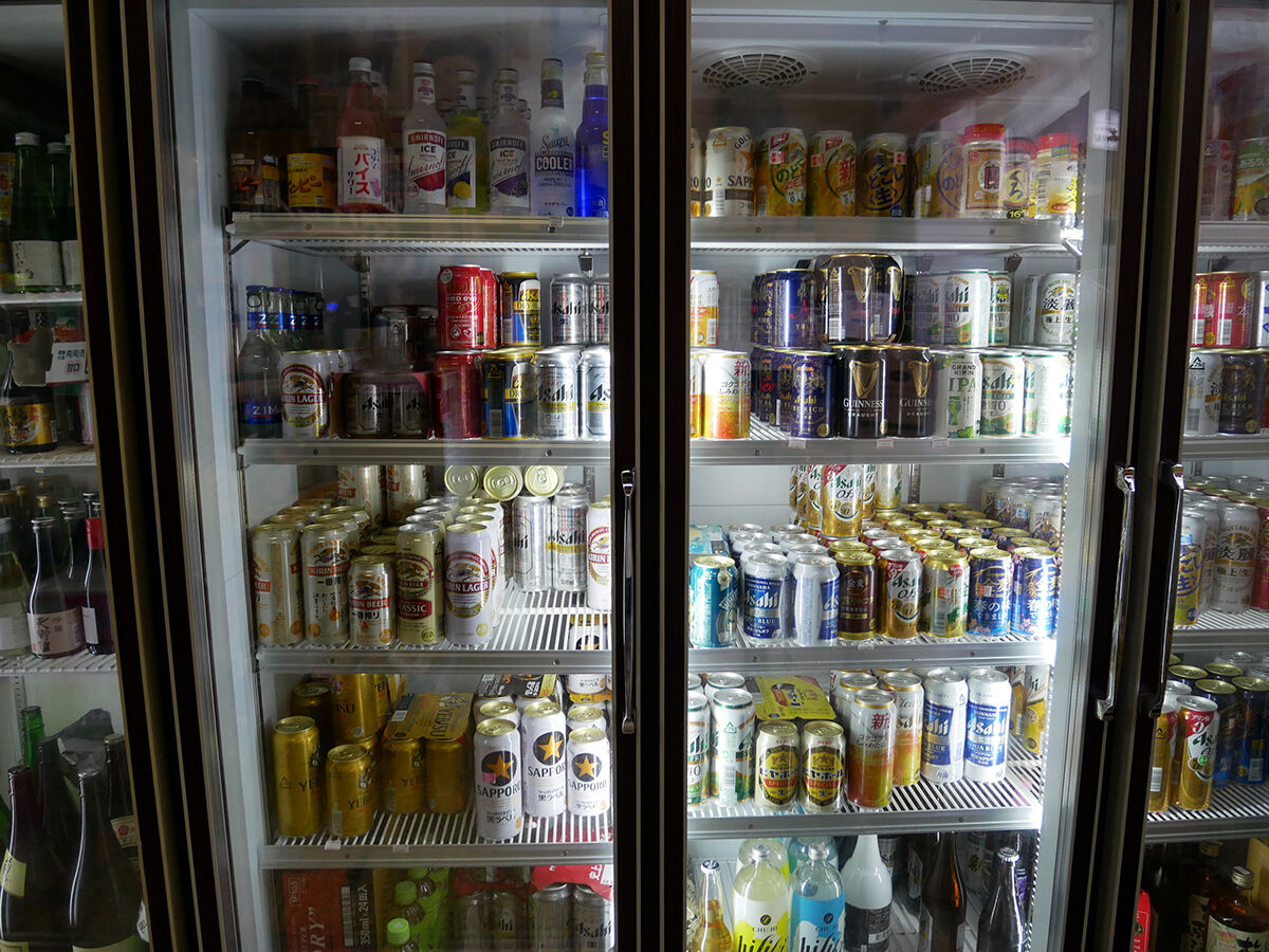 酒は入り口の冷蔵庫からセルフで取っていって、「これもらいます〜」。グラスも受け取りひとり乾杯。