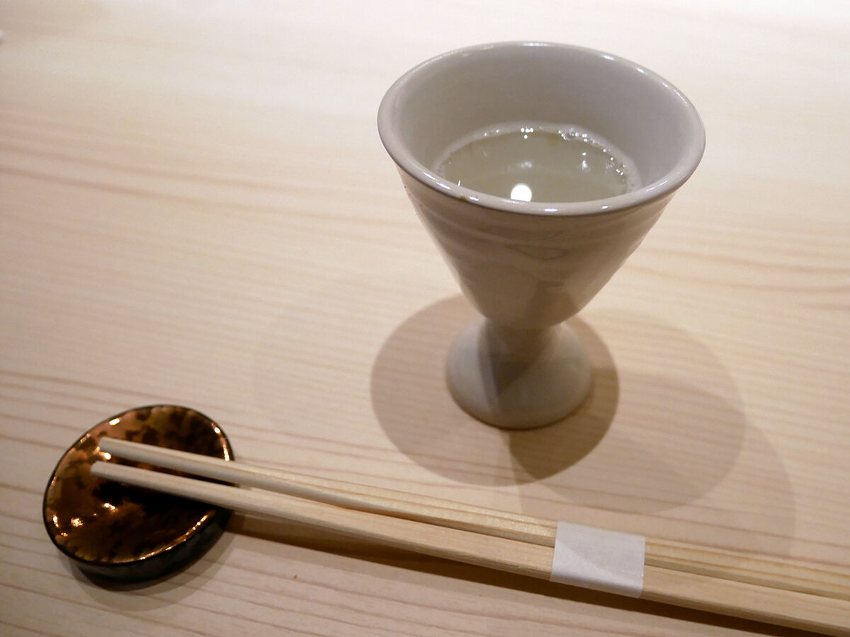 乾杯!の前に、「これでたくさん呑めますよ」とニンマリ笑顔とともにサーブされたのは2〜3口の