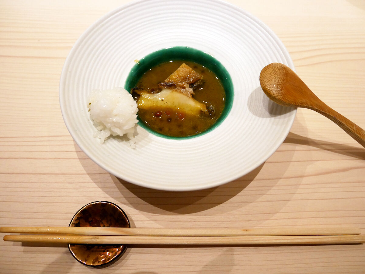 コの字のカウンター10席ほどの小ぢんまりとした空間、一切の無駄なし至極シンプルで、鼻をやさしくくすぐる木の香りと、にこやかに迎えてくださるスタッフさんたちに、こちらも顔がほころびる。