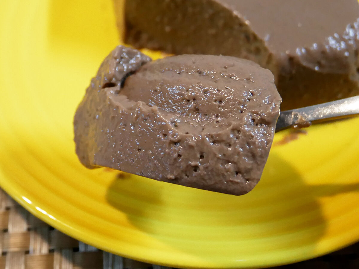 舌触り的にはお豆腐よりもモッタリとしていて、例えるならやわらかめなパンナコッタ風とでも言おうか(パンナコッタ、なつかしいな〜)。カカオ風味しっかりでチョコの濃厚さも味わいつつ、お豆腐だから全然重たくなくってペロリといけちゃう!でも丸ごと1個食べても144kcalなので安心b