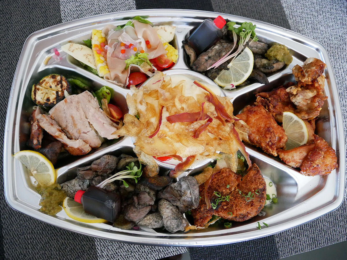 馬肉と並びイチオシの鹿児島さつま知覧どり&旬野菜など盛りだくさん!内容詳細は受け取り持ち帰るまで分からないから、そのドキドキワクワクも楽しくって、ブツを見て期待をはるかに上回る豪華さにテンション上がりまくりっしょ!先の馬刺し同様、どれが何か分かるよう蓋にマジックで書いてくれてるのも嬉しい^^なんせたっぷりボリュームなのでちょいちょいお上品に盛り付けてみた。