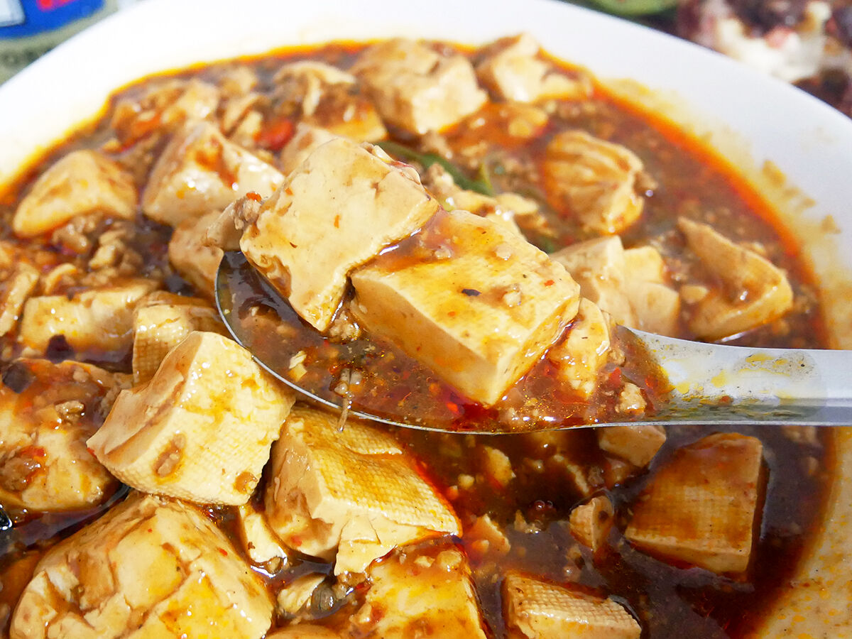 角切りの肉がゴロッゴロ、インパクトある!で、その肉のまあやらかいこと!繊維質がほろっとほどけとろっとろ〜。八角やスパイス香りさらに食欲を増進させる。麻婆のシビ辛にルーローの甘辛のかけっこが止まらん!このふたつ、セットでどうぞ。