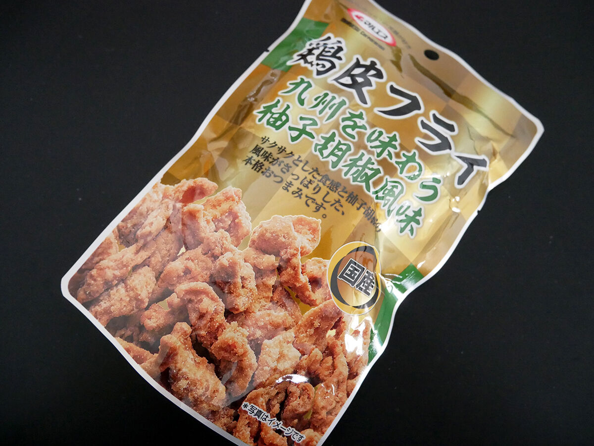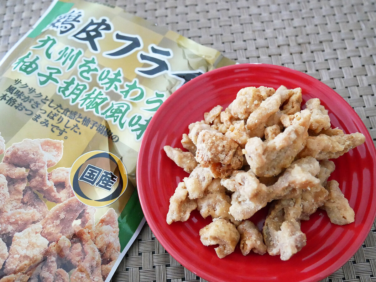 しっかり衣のザックサクに、ピリッと爽やかに香る柚子胡椒が後ひく旨さの鶏皮チップおつまみ。