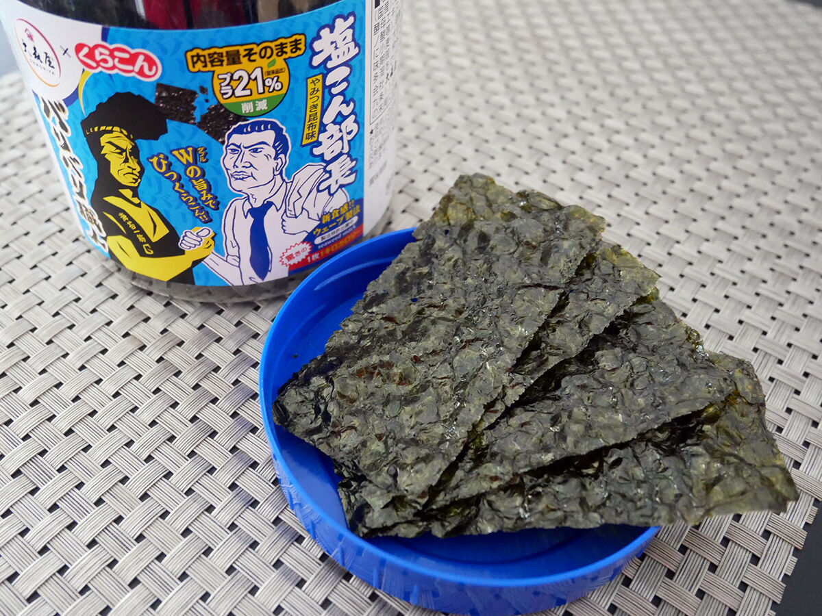 バリッバリハードな食感がどうにもクセになる!大森屋の味付け海苔『バリバリ職人』。独特の手触り、そして歯触りは一度食べたらヤミツキ必至!びっくらこんでおなじみくらこん塩こん部長とコラボしたやみつき昆布味は海苔と昆布のタブルの旨みがあと引く美味しさです!