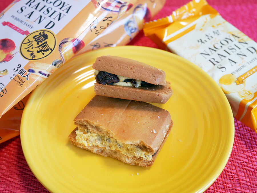 名古屋駅で購入できる名古屋レーズンサンド 濃厚プリン風味。さくほろしっとり生地にコクのあるプリンのまろやか&ほろ苦なクリーム、そして大粒レーズンがゴロゴロ!可愛らしいパッケージで個包装になっているので、バラマキ土産にもぴったりです!