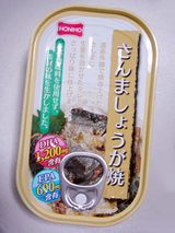 1缶(100g、固形量60g)286kcal/100g ¥98 小ぶりなさんま、頭尻尾を落とした1尾でちょっと貧弱やな~(笑) でも缶詰ならでは。骨まで食べれる柔らかさ。脂の乗り具合もGOOD。 ほんのり梅が爽やか~ちょっとツマミには最適 ☆極洋HP あなたの1Clickがプ